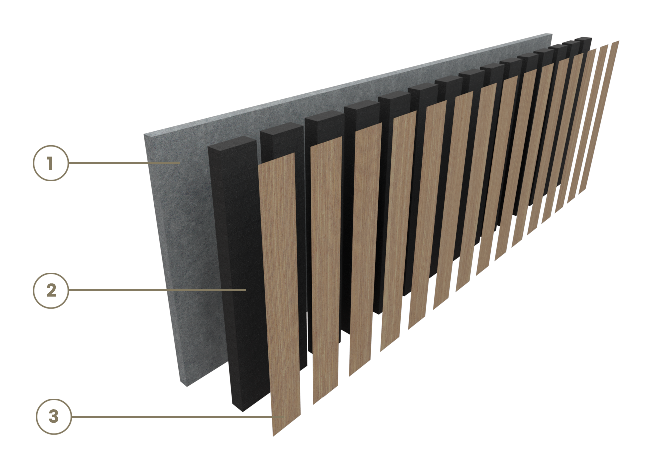Formato compacto del panel acústico, ideal para aplicaciones específicas. Conserva el mismo diseño moderno y la eficacia en absorción sonora del modelo 240.