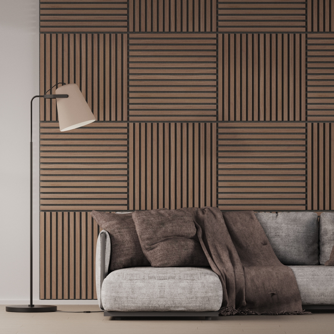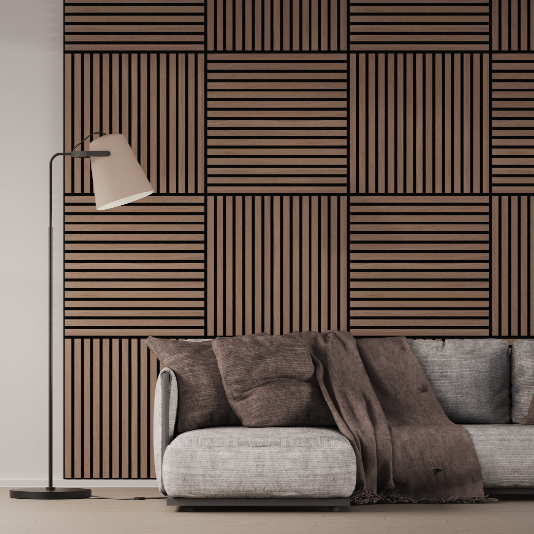 Panel Acústico Listones de Madera Enchapado Nogal 60x60cm